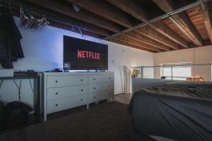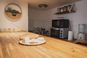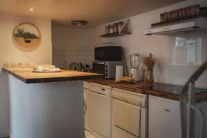 Accommodation comprises a living room with a flat-screen TV and two beds in total across the separate bedroom and living area. The fully equipped kitchen includes a stovetop, refrigerator, dishwasher, microwave, electric kettle as well as a dining table for convenient meal preparation and enjoyment. The bathroom features a shower, hairdryer, shampoo, body soap and toilet, towels and bed linen are provided to ensure guest comfort.
