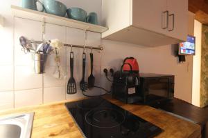 Klimatizované studio je vybaveno jednou postelí a dobře zařízeným kuchyňským koutem s lednicí, mikrovlnnou troubou, troubou, myčkou nádobí, kávovarem i potřebným nádobím a jídelním stolem. Součástí vybavení jsou také žehlička se žehlícím prknem, pračka, ručníky a ložní prádlo. K dispozici je posezení v pokoji spolu s topením a bezbariérovým přístupem.