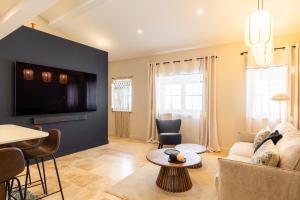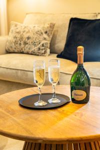 Prostorný apartmán zahrnuje dvě ložnice a obývací pokoj s pohovkou, celkem zde jsou tři lůžka. Hosté mají k dispozici dvě koupelny s bezbariérovými sprchami, vanami včetně spa vany, fénem na vlasy, šamponem, mýdlem na tělo a toaletami. Kuchyňský kout je plně vybaven moderními spotřebiči jako trouba, varná deska, lednice, myčka nádobí, mikrovlnná trouba i toustovač, nechybí ani zařízení pro přípravu čaje a kávy včetně kávovaru a rychlovarné konvice.