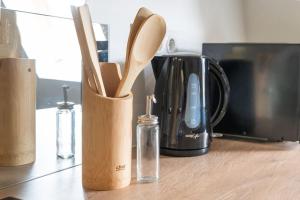 Tento jednopokojový apartmán má dvě postele a obývací pokoj vybavený televizí s plochou obrazovkou pro zábavu. Hosté si mohou připravit jídlo v plně vybavené kuchyni s varnou deskou, mikrovlnnou troubou a zařízeními na přípravu čaje i kávy. Mezi základní vybavení pokoje patří topení, ručníky, žehlička a povlečení zajišťující pohodlí během pobytu.