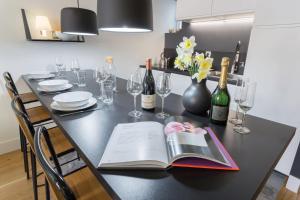 Das Apartment verfügt über ein Schlafzimmer mit zwei Betten sowie ein separates Wohnzimmer mit Fernseher. Den Gästen stehen zwei private Badezimmer mit Haartrocknern zur Verfügung. Die voll ausgestattete Küche umfasst einen Backofen, Herdplatte, Geschirrspüler, Mikrowelle, Kaffeemaschine und alle notwendigen Küchenutensilien zur einfachen Zubereitung von Mahlzeiten.