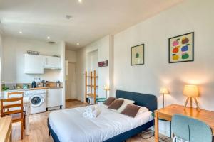 Apartmán La Suite Urbaine - Grand studio - proche métro B se nachází v 7. obvodu Lyonu a nabízí prostorný pokoj a bezplatné WiFi připojení. Objekt je vzdálen pouhých 1,8 km od Musée des Confluences a 4,3 km od vlakového nádraží Part-Dieu.