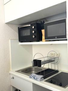 Дополнительные удобства включают Wi-Fi по всей территории квартиры и условия для самостоятельного питания благодаря наличию мини-кухни с оборудованием для готовки и хранения продуктов.