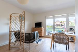 Studio má plně vybavený kuchyňský kout s lednicí, myčkou nádobí, mikrovlnnou troubou, toustovačem, kávovarem, rychlovarnou konvicí, kuchyňským náčiním a jídelním stolem. Ubytování zahrnuje jednu postel, topení, žehlicí potřeby včetně žehličky a žehlícího prkna, sušák na prádlo, ručníky i ložní prádlo a také pračku a šatní skříň.