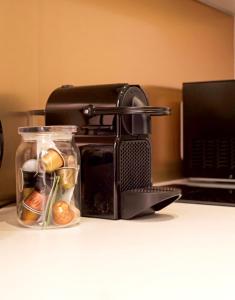 Uvnitř studia najdou hosté jednu postel doplněnou rozkládacím gaučem a posezení vhodné pro relaxaci či práci s pracovním stolem a skříní pro uskladnění věcí. Kuchyňský kout je vybaven moderními spotřebiči jako varná deska, lednice, mikrovlnná trouba, toustovač, kávovar a elektrická konvice spolu s kuchyňským nádobím i jídelním stolem pro pohodlí.