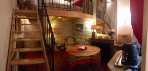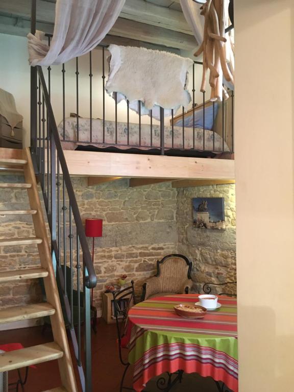 Uvnitř apartmánu najdete spaní na galerii doplněné o odkryté dřevěné trámy a kamenné zdi i stropy. Obývací část zahrnuje posezení s televizí s plochou obrazovkou se satelitními kanály. Kuchyňský kout je plně vybaven moderními spotřebiči jako mikrovlnná trouba, kávovar, lednice, toustovač a elektrická konvice spolu s kuchyňským náčiním a jídelním stolem pro pohodlí hostů.