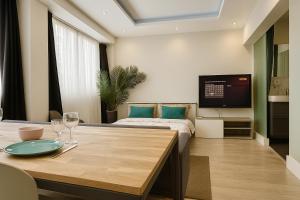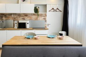 Tento jednopokojový apartmán má samostatnou ložnici i koupelnu vybavenou sprchou i vanou spolu s bezplatnými toaletními potřebami a župany. Kuchyňský kout je plně vybaven moderními spotřebiči jako varná deska, mikrovlnná trouba, lednice, toustovač, kávovar a čajové potřeby doplněné kuchyňským nádobím a jídelním stolem pro přípravu jídel.