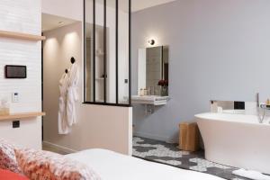 MiHotel Charité ofrece suites con aire acondicionado y comodidades exclusivas de bienestar, ubicado en Lyon, a solo 700 metros de la estación de tren Lyon Perrache y a 600 metros del centro de la ciudad. Este hotel íntimo cuenta con dos habitaciones, cada una brindando una experiencia única: una con jacuzzi y baño de spa, y otra con una acogedora chimenea.