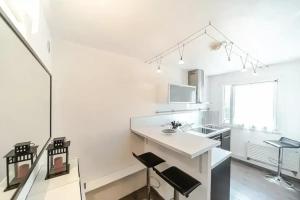 Plně vybavená kuchyň obsahuje kuchyňské nádobí, troubu, mikrovlnnou troubu, lednici, kávovar a jídelní stůl vhodný ke stolování doma. Další vybavení zahrnuje pračku, bezdrátové internetové připojení po celém prostoru poskytující bezplatné Wi-Fi služby televize i bezbariérový přístup do celého apartmánu.