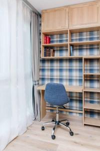 Ubytování zahrnuje jednu ložnici se dvěma lůžky doplněnou plně vybaveným kuchyňským koutem s mikrovlnnou troubou, varnou deskou, lednicí, kávovarem, toustovačem, elektrickou konvicí, minibarem a veškerým potřebným kuchyňským náčiním spolu s jídelním stolem pro stolování. Koupelna nabízí bezbariérový sprchový kout bez schodů a je vybavena šamponem, kondicionérem, tělovým mýdlem a fénem pro pohodlí hostů. Další vybavení pokoje zahrnuje dřevěné podlahy, topení, žehlicí potřeby včetně žehličky a prkna na žehlení, pracovní stůl s noční zásuvkou pro nabíjení zařízení i pohovku rozkládací na spaní.